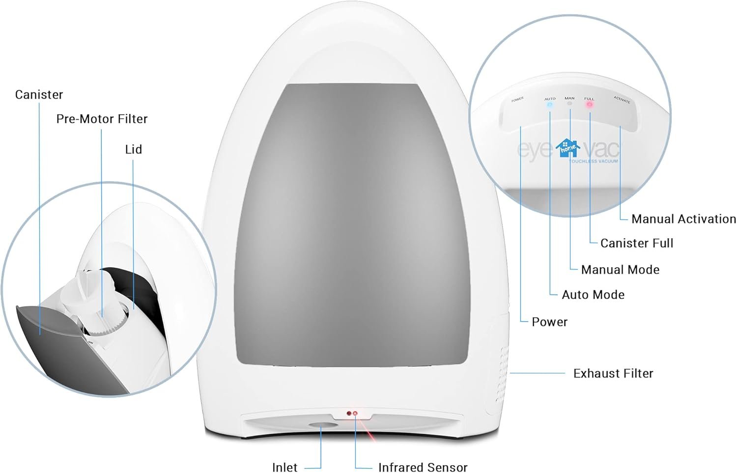 CONVENIENT: always on and always ready infrared sensors activate Eye Vac automatically