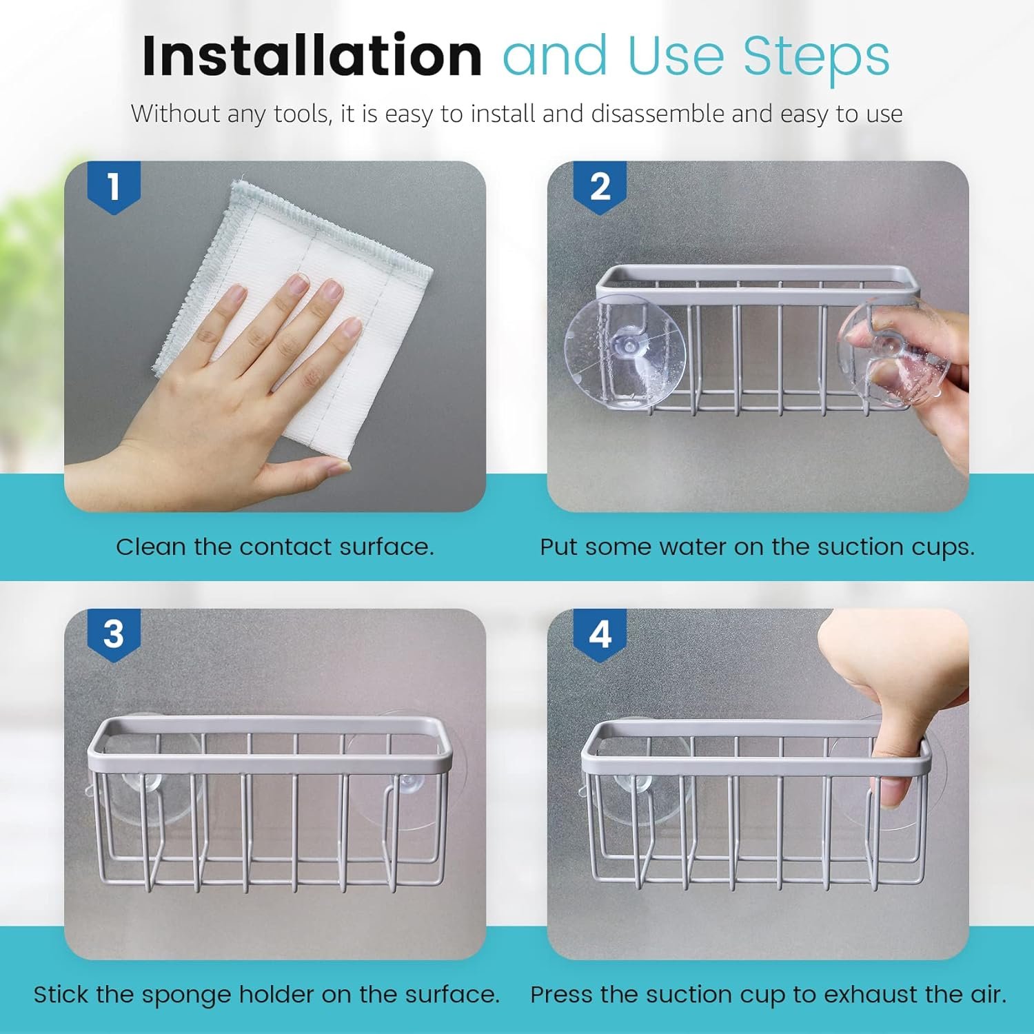 Easy to install: Just connect the dish sponge holder with sucker within 1 minutes.