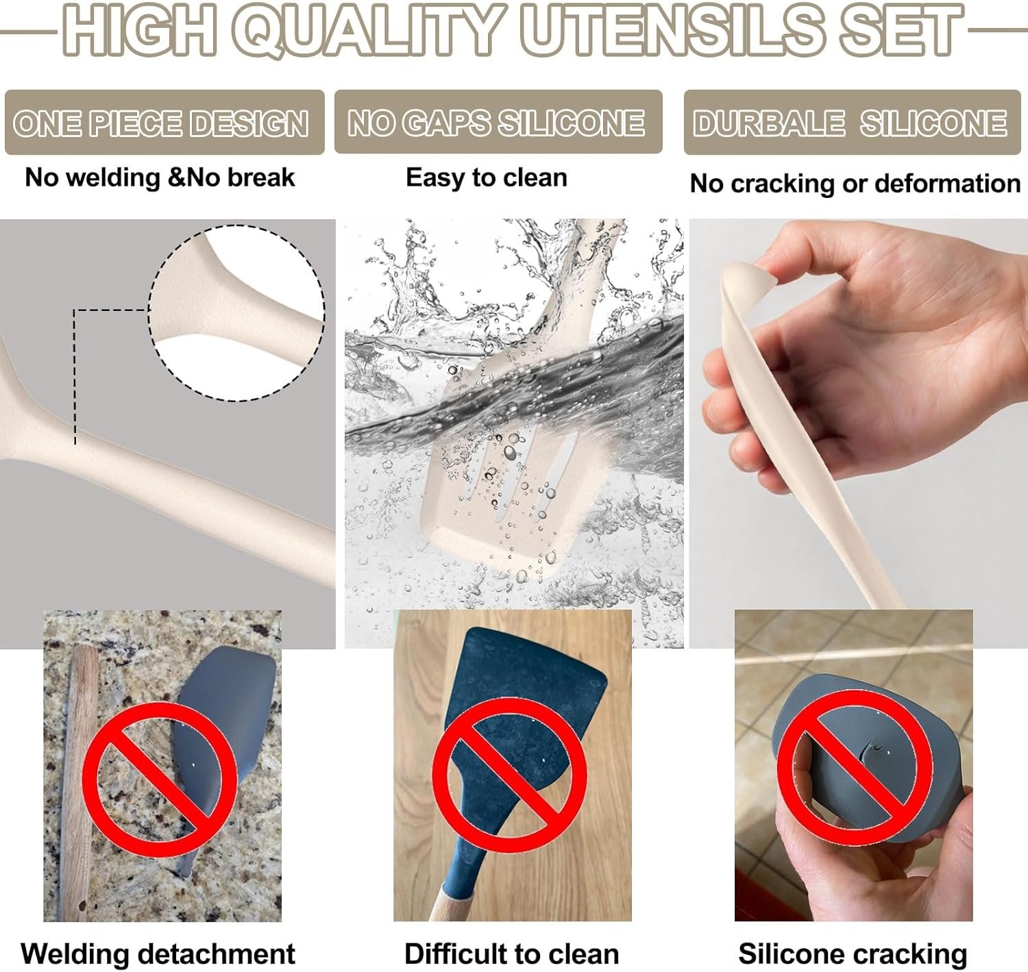 Effortless Cleaning in Two Steps: Crafted from high-quality, non-porous silicone, this set cleans up in seconds. A quick wipe under running hot water or a gentle rinse in warm water is all it takes to lift away oil and residue. For optimal care and longevity, hand washing is recommended.